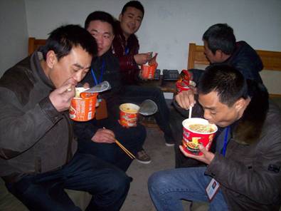 圖為管網(wǎng)維修人員在大年三十“聚餐”。
