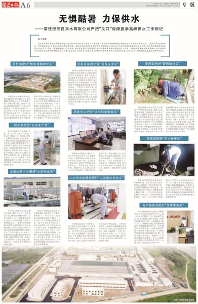 最近是不是習(xí)慣了倚窗聽雨,享受清涼世界的日子?很多人心里竊喜:“莫不是今年的酷暑君云游四方去了?”熟不知三伏天已悄然來臨, “大暑”節(jié)氣也已登上夏日舞臺(tái)。燒烤模式正式拉開帷幕。古詩(shī)云,“赤日滿天地,火云成山岳。草木盡焦卷,川澤皆竭涸。入伏之后的熱是不分古今的。一輪輪降雨,天氣潮濕又悶熱,盡管雨水豐裕,但自來水的需求也絲毫未減。為保障夏季高峰安全優(yōu)質(zhì)供水,宿遷銀控自來水有限公司未雨綢繆,提前從生產(chǎn)安全、水質(zhì)安全、科學(xué)調(diào)度、管網(wǎng)保障、提升服務(wù)、項(xiàng)目擴(kuò)建等多方面做足準(zhǔn)備,無懼酷暑,默默堅(jiān)守,擔(dān)負(fù)使命,嚴(yán)把關(guān)口,堅(jiān)決保證圓滿完成夏季高峰供水任務(wù)。