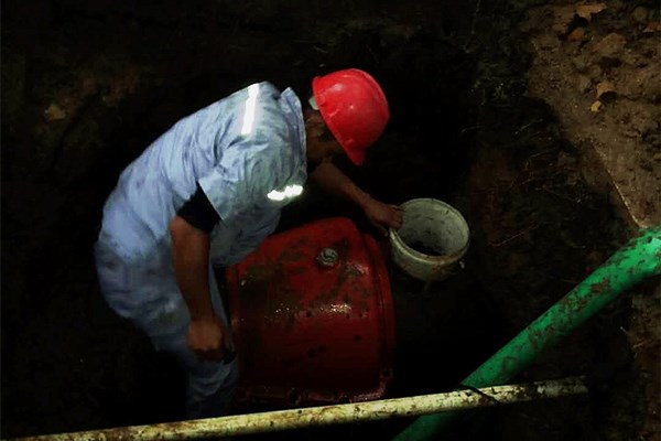 這樣大口徑的管網(wǎng)搶修,在設備條件不利的情況下,周明智等維修人員帶水作業(yè),確保了不停水,保障了百姓安全用水。