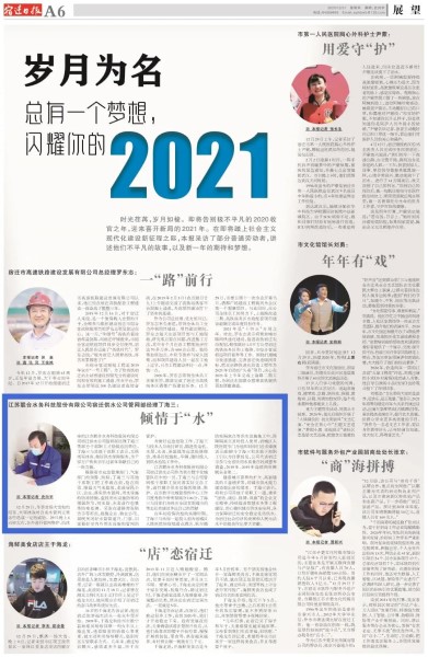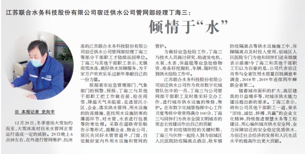 恰逢陽(yáng)歷新年前夕,大戰(zhàn)寒潮之時(shí),宿遷供水公司管網(wǎng)部經(jīng)理丁海三被《宿遷日?qǐng)?bào)》專(zhuān)版約訪并報(bào)道,這是一份屬于聯(lián)合水務(wù)供水人的榮耀。