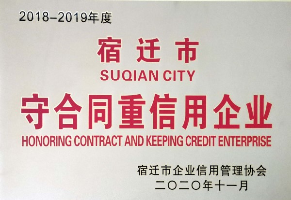 (圖2:《宿遷市守合同重信用企業(yè)證書》)