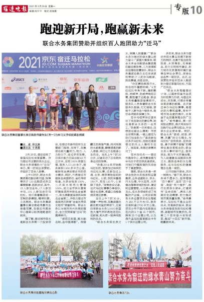 3月28日,宿遷迎來了首屆馬拉松體育盛事。作為宿遷市主要的供水企業(yè),聯(lián)合水務(wù)傾情助力“遷馬”舉辦,第一時間出資贊助,并組織了百余人參賽。