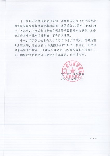 對于項目的建設,公司領導高度重視,集中解決項目難題,加快項目前期手續(xù)的辦理,已于5月19日獲得市行政審批局的關于項目核準的批復。為確保目標工期順利實現,其他項目前期工作也在加緊進行中。