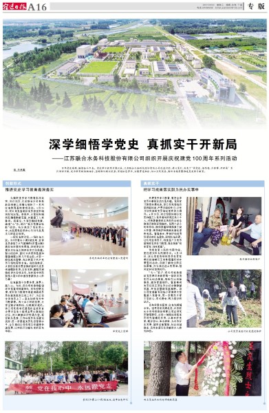 百年黨史璀璨,接續(xù)奮斗不息。黨史學(xué)習(xí)教育開展以來,江蘇聯(lián)合水務(wù)科技股份有限公司迅速行動,精心策劃,制定了“學(xué)黨史、悟思想、辦實事、開新局”系列活動方案,突出學(xué)思踐悟相結(jié)合,堅持強化理論武裝、深挖紅色資源,注重貫通融合、貼心為民服務(wù),高標(biāo)準(zhǔn)高質(zhì)量推進黨史學(xué)習(xí)教育。