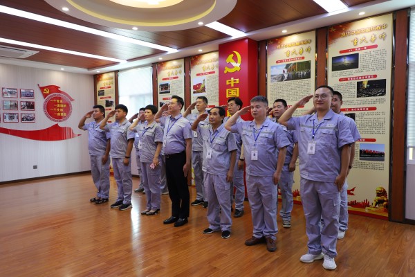 座談會結(jié)束,大家來到辦公樓三樓,參觀公司新建成的黨員活動室,處處洋溢著的黨性光輝讓大家激情滿懷,對著黨旗行軍禮,莊重肅穆,再展軍人風(fēng)姿。