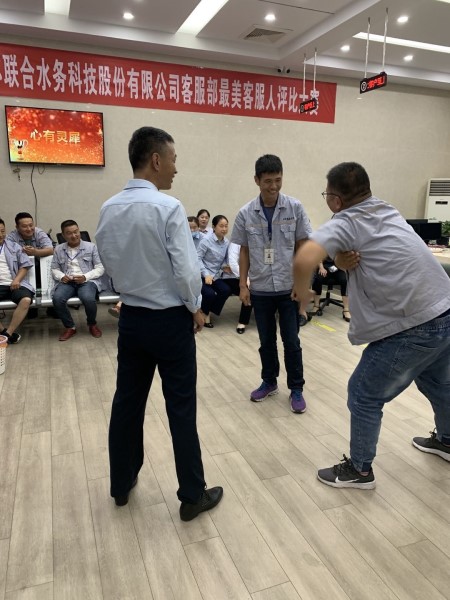活動開始,首先陳美菊經(jīng)理對于我們每位員工這半年來的業(yè)績給與了充分的肯定,在工作中體現(xiàn)了盡職盡責(zé),吃苦耐勞,團(tuán)結(jié)友愛的協(xié)作精神。在知識競答環(huán)節(jié)中,涉及到了綜合業(yè)務(wù)能力的展現(xiàn)和公司規(guī)章制度的梳理和解答。。經(jīng)過競答環(huán)節(jié),拔得頭籌的是營業(yè)廳胡婧和抄表員黃雷。作為客服部的一員,在業(yè)務(wù)上做到精益求精,是每個員工的基本要求,營業(yè)廳是公司的對外窗口,妝容美麗得體和著裝統(tǒng)一是服務(wù)客戶的基本禮儀,而抄表員作為外勤服務(wù)方,除了定時定量完成抄收任務(wù)的同時,安全問題也成了重中之重。在心有靈犀活動中,每位客服人員都積極參與,配合默契,相得益彰,這也充份體現(xiàn)了我們客服人員的團(tuán)結(jié)友愛,團(tuán)結(jié)產(chǎn)生力量,齊心協(xié)作精神。