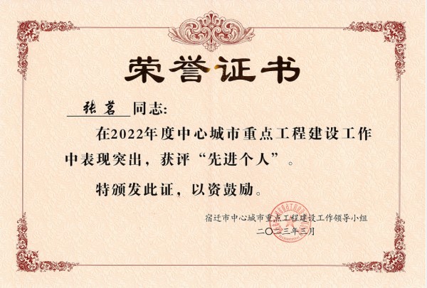 近日,江蘇省宿遷市中心城市重點(diǎn)工程建設(shè)工作領(lǐng)導(dǎo)小組對(duì)中心城市重點(diǎn)工程領(lǐng)域涌現(xiàn)出的先進(jìn)單位和個(gè)人進(jìn)行了表彰,江蘇聯(lián)合水務(wù)科技股份有限公司張茗憑借在“中運(yùn)河宿遷閘西水源移址工程”中的突出貢獻(xiàn),榮獲2022年度中心城市重點(diǎn)工程建設(shè)“先進(jìn)個(gè)人”稱號(hào)。