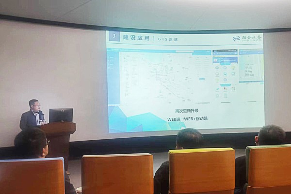會上,各單位就智慧水務建設發(fā)展規(guī)劃進行了分享,在智慧排水、數(shù)據(jù)就是生產(chǎn)力、企業(yè)智慧化轉(zhuǎn)型等方面進行了詳細的研究與討論。聯(lián)合水務宿遷供水公司生產(chǎn)技術總監(jiān)薛江寧就《基于漏損控制智慧水務規(guī)劃建設應用》進行了專題匯報,并詳細介紹了公司智慧水務建設規(guī)劃與管網(wǎng)GIS系統(tǒng)建設情況,與會專家、同行表示:公司智慧水務建設務實、高效,有力地促進了供水漏損控制和提高了企業(yè)管理效率。