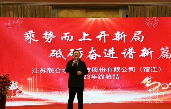 會(huì)議最后,聯(lián)合水務(wù)董事、常務(wù)副總裁劉猛先生作重要講話。劉總表示,宿遷公司面對(duì)嚴(yán)峻的外部環(huán)境,能及時(shí)采取一系列措施和創(chuàng)新辦法,不斷推進(jìn)精益管理,加快自主研發(fā)和創(chuàng)新,持續(xù)深耕細(xì)作開拓市場(chǎng),他為宿遷公司所取得的成績(jī)感到驕傲。在已經(jīng)到來的2024年,劉總對(duì)全體人員提出幾點(diǎn)要求:一是抓好運(yùn)營(yíng)管理,強(qiáng)化運(yùn)營(yíng)管理水平,加強(qiáng)專業(yè)能力建設(shè),讓運(yùn)營(yíng)管理成為企業(yè)的核心競(jìng)爭(zhēng)力;二是不斷開拓創(chuàng)新,企業(yè)發(fā)展如逆水行舟,不進(jìn)則退,公司在做精做專現(xiàn)有主營(yíng)業(yè)務(wù)基礎(chǔ)上,要積極創(chuàng)新發(fā)展模式,布局衍生產(chǎn)業(yè)鏈,不斷拓寬發(fā)展空間;三是堅(jiān)持自主創(chuàng)新,未來水務(wù)行業(yè)將邁向智慧化,我們要前瞻把握市場(chǎng)行業(yè)趨勢(shì),大力推進(jìn)智能化轉(zhuǎn)型升級(jí),以科技創(chuàng)新保持“源動(dòng)力”,向全產(chǎn)業(yè)鏈“智慧水務(wù)”發(fā)展邁進(jìn)。最后,劉總殷切希望大家通過努力奮斗,都能迸發(fā)出屬于自己的光彩,創(chuàng)造出值得紀(jì)念的瞬間和回憶。