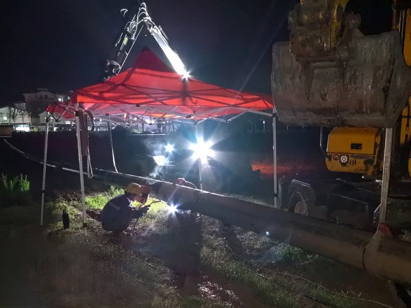 為有效解決陳集鎮(zhèn)低壓片區(qū)水壓問題,公司決定從洋河紅廟大橋片區(qū)所預(yù)留的DN400閘閥后方延伸管道,頂管橫穿古黃河,并與陳埠線DN300管道進(jìn)行對接,以實現(xiàn)對該區(qū)域的加壓。此舉將大大提高該區(qū)域的水壓穩(wěn)定性,為確保能在夏日高峰期前正常供水,工程管理部多次加班加點進(jìn)行夜間施工,目前工程已順利完成并進(jìn)行并網(wǎng)供水。