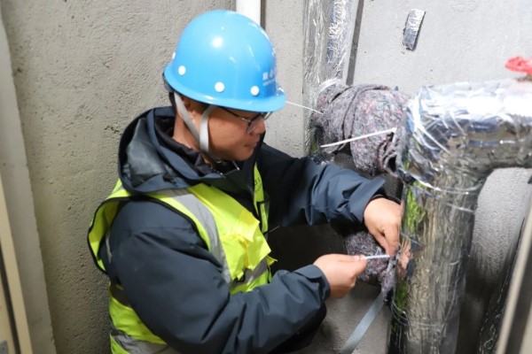 他是維修員張棟棟。背著沉重的工具包,他穿梭在大街小巷,寒風(fēng)凜冽,腳步不歇,在狹小的管道井、在沒有電梯的樓梯間……他細致地檢查管道,包裹保溫材料,用腳步丈量責(zé)任,以實干詮釋擔(dān)當(dāng)!懊恳粚拥乃硐,我們都要對保溫棉、表套等進行檢查,并做好記錄。遇到雨雪冰凍天氣,我們還會增派人員,加大巡檢力度!焙眮砼R前,公司全體維修員不畏嚴(yán)寒,爭分奪秒,對小區(qū)管道井、水表箱進行全面檢查和維護,每一處細節(jié)都不放過,一旦出現(xiàn)供水故障,他們會迅速組織人員搶修,以最快速度恢復(fù)供水。