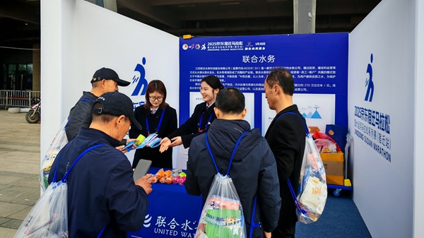 此前,聯(lián)合水務(wù)受邀參加“2025宿遷馬拉松”官方發(fā)布會(huì)并接受授牌。在馬拉松品牌展位上,聯(lián)合水務(wù)為選手們準(zhǔn)備了定制禮品現(xiàn)場發(fā)放。這些禮品承載著聯(lián)合水務(wù)對(duì)選手們最真摯的關(guān)懷與祝福,致敬他們所付出的努力與汗水,希望他們擁有健康的體魄,跑向更美好的未來。