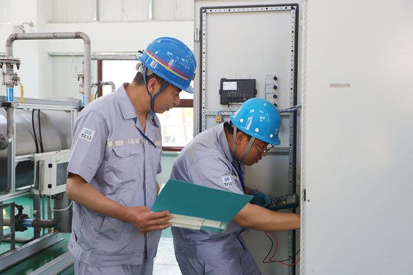 運(yùn)行班組在5月初便展開設(shè)備“全身體檢”,針對(duì)夏季高負(fù)荷運(yùn)轉(zhuǎn)特點(diǎn),重點(diǎn)對(duì)取水泵房機(jī)組、加氯系統(tǒng)、送水泵房等核心設(shè)備進(jìn)行深度維保。技術(shù)人員采用室內(nèi)測(cè)溫儀監(jiān)測(cè)電機(jī)、配電柜的運(yùn)行溫度,更換老舊閥門,升級(jí)配電柜散熱系統(tǒng),確保設(shè)備在40℃高溫環(huán)境下仍能保持95%以上運(yùn)行效率。