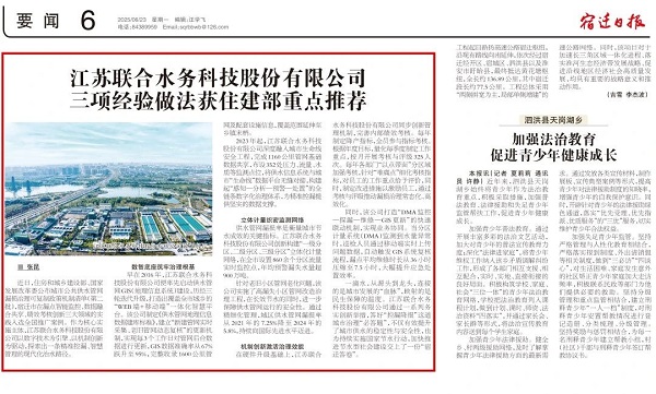 近日,住房和城鄉(xiāng)建設(shè)部、國家發(fā)展改革委公布城市公共供水管網(wǎng)漏損治理可復(fù)制政策機(jī)制清單(第二批),宿遷市在漏點(diǎn)智能監(jiān)控、數(shù)據(jù)融合共享、績效考核創(chuàng)新三大領(lǐng)域的實(shí)踐入選全國推廣案例。作為核心實(shí)施主體,江蘇聯(lián)合水務(wù)科技股份有限公司以數(shù)字技術(shù)為引擎、以機(jī)制創(chuàng)新為驅(qū)動,探索出一條精準(zhǔn)控漏、智慧管理的現(xiàn)代化治水路徑。