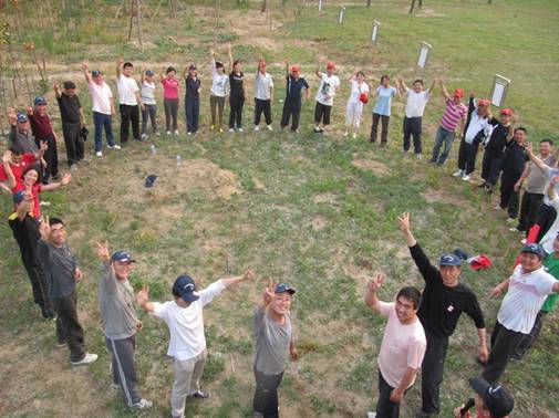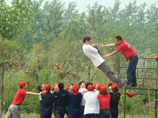 所以,我們十六個(gè)人在下面搭好“大床”后,會(huì)齊聲對(duì)上面的伙伴說(shuō):“我們準(zhǔn)備好了,請(qǐng)相信我們!”。上面的隊(duì)員跳下來(lái),穩(wěn)穩(wěn)地被接住,毫發(fā)不損。最無(wú)賴(lài)的是技術(shù)部胡經(jīng)理,他覺(jué)得躺在大家臂彎里的感覺(jué)好極了,纏纏綿綿不愿離開(kāi),被大家硬掀了過(guò)去。