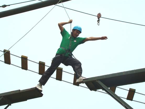 高空斷橋教會(huì)了我們勇敢,給了我們勇氣。這次體驗(yàn)讓我們明白,那些困難大張著嘴等著吞噬我,看似不可能駕馭,不可以完成,可是,當(dāng)鼓起勇氣做的時(shí)候才發(fā)現(xiàn),所謂困難,也就是只紙老虎。