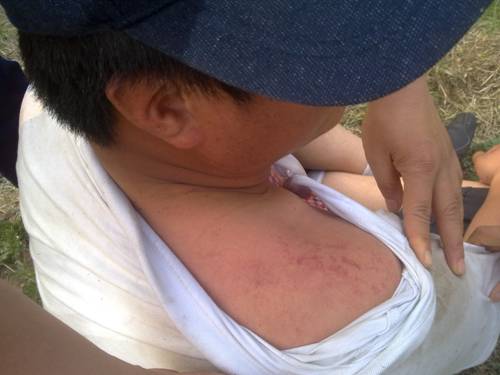 教練說(shuō):請(qǐng)剛才為大家搭基座的伙伴站出來(lái)。我看到了楊坤等人出列了,而且,看到了他們被踩得青紫的肩膀。
