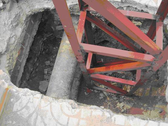 圖為和自來(lái)水管道緊密相連的鋼架底部: