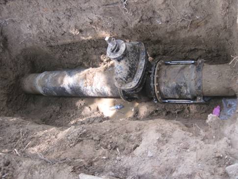 主管道閘閥關(guān)閉以后,如何盡快搶修管道恢復(fù)供水是當(dāng)前最大問題,現(xiàn)場看到的漏水點(diǎn)有好幾處,很難快速確定真正的漏水點(diǎn)。為了保障供水安全,盡快恢復(fù)受損管道供水,根據(jù)現(xiàn)場管網(wǎng)分布,決定在300水泥主管道上加裝一只DN400閘閥,這樣可以關(guān)閉閘閥便于維修對不會對附近的正常供水產(chǎn)生較大影響,為維修創(chuàng)造更有利的條件。由于正值農(nóng)忙時(shí)間,很多輔助工都回家農(nóng)忙去了,為了加快維修速度,公司領(lǐng)導(dǎo)協(xié)調(diào)工程部的安裝施工隊(duì),抽調(diào)各個(gè)施工隊(duì)的精兵強(qiáng)將來保障施工進(jìn)度,在時(shí)間緊任務(wù)重的情況下,管網(wǎng)部的員工緊密配合,維修現(xiàn)場部門領(lǐng)導(dǎo)和老同志也紛紛親力親為,不怕臟,不怕累,經(jīng)過一夜的苦戰(zhàn),圓滿地完成了維修任務(wù)。