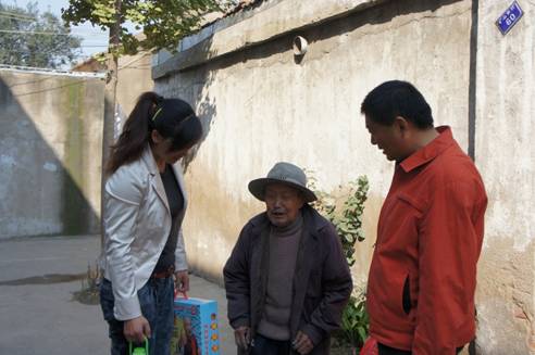 上午,公司人事行政總監(jiān)柴亞?wèn)|和客戶服務(wù)部經(jīng)理郁莉帶著各類營(yíng)養(yǎng)品,走街串巷,看望轄區(qū)內(nèi)居住的低保老人。