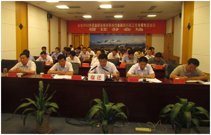 6月21日下午,江蘇省2012年民主評議城市供水行業(yè)政風(fēng)行風(fēng)電視電話會議在南京召開,省住房城鄉(xiāng)建設(shè)廳廳長周嵐,副廳長王翔,省委紀(jì)委駐廳紀(jì)檢組組長、廳機(jī)關(guān)黨委書記張寧寧等出席會議。同時(shí),13個(gè)省轄市分別設(shè)分會場,供水主管部門、供水企業(yè)負(fù)責(zé)人參加各分會場會議。