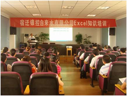 Excel是我們?nèi)粘9ぷ髦凶畛S玫霓k公軟件,然而大多數(shù)只停留在一些簡單的操作上,在當(dāng)前追求效率的時(shí)代,讓員工們再提升、再學(xué)習(xí)就顯得非常重要,應(yīng)廣大員工的要求, 2012年7月5日上午8:30,宿遷銀控自來水有限公司的Excel知識培訓(xùn)在公司的三樓會議室舉行,自來水公司及下屬工程公司、水檢公司近50人參加了培訓(xùn)。培訓(xùn)由公司副總經(jīng)理夏學(xué)春擔(dān)任授課老師。