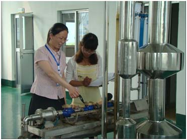 在強(qiáng)化新員工實(shí)際動(dòng)手操作能力的這一環(huán)節(jié),計(jì)量站主管張黎明親自指導(dǎo)新員工如何安裝水表、如何準(zhǔn)確讀出水表流量等。同時(shí)還強(qiáng)調(diào)在校表過程中需要注意的具體事項(xiàng),例如在安裝水表過程中,切勿將手放在水表校驗(yàn)臺(tái)的管接頭處;在排氣過程中,注意三個(gè)玻璃轉(zhuǎn)子流量計(jì)(LZB50、LZB25、LZB15)開關(guān)的先后順序等等。