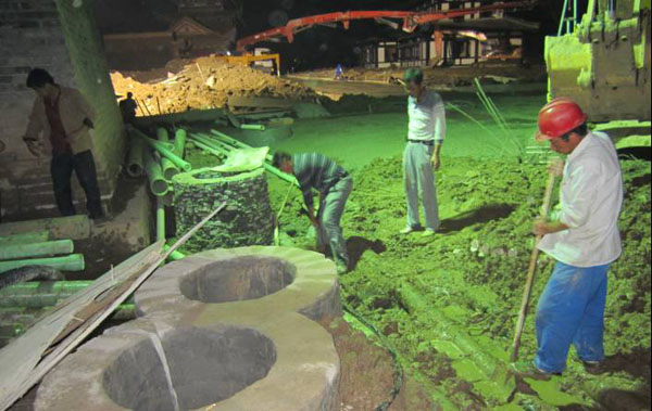 圖:景區(qū)內(nèi)維修管道的施工場(chǎng)面