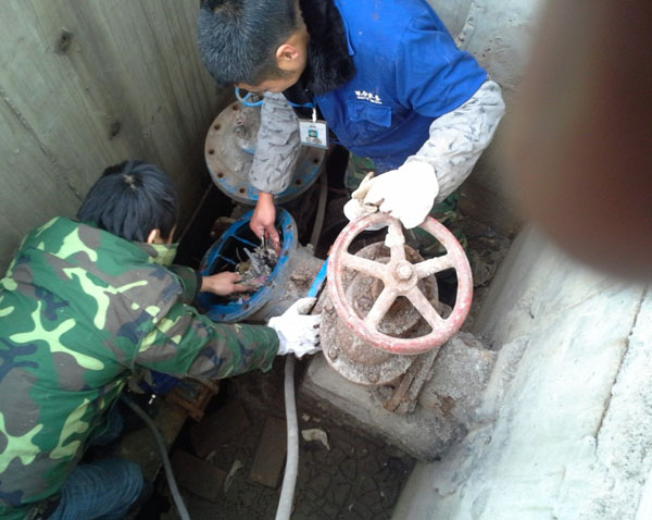 近期,一水廠四萬噸斜管沉淀池排泥流量與往日相比較小,影響排泥系統(tǒng)正常工作。調(diào)度中心工作人員隨即對排泥管道進(jìn)行檢查,發(fā)現(xiàn)造成流量減小的原因很有可能是角式隔膜式排泥閥堵塞。原因確定之后工作人員立即對角式隔膜式排泥閥進(jìn)行拆卸,發(fā)現(xiàn)其內(nèi)部已被雜物嚴(yán)重堵塞,由于堵塞雜物較多,清理難度大。工作人員只能用手一點(diǎn)一點(diǎn)將其清理,經(jīng)過半個(gè)多小時(shí)的清理終于完成,再次開閥后,流量恢復(fù)正常。