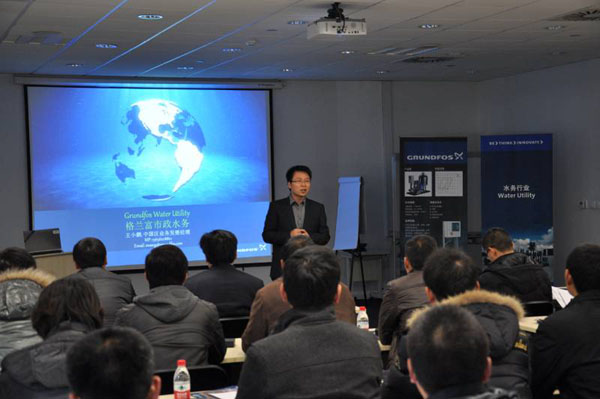 為了更好地開展公司二次供水業(yè)務(wù),12月6-7號(hào), 受蘇州格蘭富廠家的邀約,聯(lián)合水務(wù)下屬宿遷和咸寧自來(lái)水公司相關(guān)人員到蘇州參加為期兩天的培訓(xùn),主要內(nèi)容涉及二次供水加壓泵站設(shè)備的了解和安裝。宿遷公司九名員工參加了培訓(xùn)。