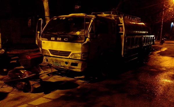 黃河北路和與發(fā)展大道之間新鋪設(shè)的一條公路上,有明顯的沖水痕跡,當(dāng)稽查員發(fā)現(xiàn)時(shí),施工車輛已基本完工。次日,稽查員對(duì)該路段進(jìn)行了巡查,在發(fā)現(xiàn)道路兩側(cè)在進(jìn)行綠化施工后,斷定晚間一定還會(huì)出現(xiàn)違章用水行為。于是,在晚間開始了路段蹲守,為使蹲守不被發(fā)現(xiàn),隊(duì)員沒有駕車,而是各自騎著自己的摩托車。果然,在23時(shí)許,沖水車輛出現(xiàn)了,隊(duì)員馬上進(jìn)行了尾隨跟蹤,沖洗車輛在距施工路段西側(cè)約0.5公里處的路邊停下。