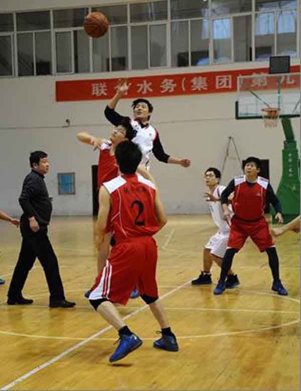 為迎接新一年的到來(lái),不斷增強(qiáng)擴(kuò)大員工的團(tuán)隊(duì)精神,有力促進(jìn)各項(xiàng)目公司之間的友誼與協(xié)作,2013年2月5日上午,聯(lián)合水務(wù)(集團(tuán))第九屆春節(jié)聯(lián)歡籃球友誼賽在宿遷市體育運(yùn)動(dòng)學(xué);@球場(chǎng)內(nèi)拉開帷幕。此次比賽共有兩場(chǎng),分別是宿遷銀控自來(lái)水有限公司籃球隊(duì)對(duì)咸寧聯(lián)合水務(wù)有限公司籃球隊(duì);聯(lián)合水務(wù)(集團(tuán))自來(lái)水項(xiàng)目籃球聯(lián)隊(duì)對(duì)聯(lián)合水務(wù)(集團(tuán))污水項(xiàng)目籃球聯(lián)隊(duì)。