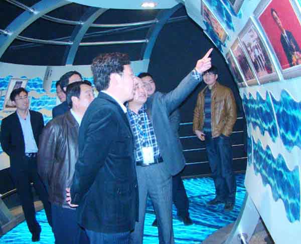 (圖二、夏總為王市長(zhǎng)介紹水博館水脈里程)