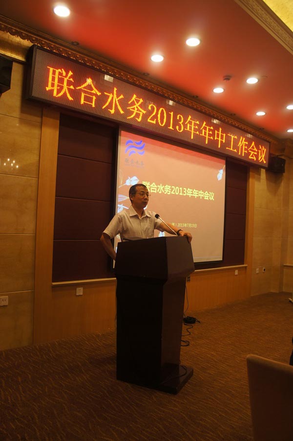 全天會議的最后議程,由集團俞偉景總裁總結了聯(lián)合水務2013年上半年度工作并對下半年重點工作做了部署。俞總首先充分肯定了各運營公司上半年取得的業(yè)績,對上半年業(yè)績達到目標的公司,下半年要再接再厲、繼續(xù)努力;上半年業(yè)績有待提高的公司,希望下半年繼續(xù)披荊斬棘,努力完成全年目標;通過大家齊心協(xié)力的努力,爭取全集團超額完成2013 年目標。接著,俞總提出,中國水務行業(yè)將迎來黃金發(fā)展期:中國未來10年城鎮(zhèn)化建設的快速增長勢必推動供水與污水處理業(yè)務的快速發(fā)展;老百姓對生活環(huán)境與生活品質(zhì)要求的逐年提高也成為推動水務行業(yè)發(fā)展的巨大動力。在有利的外部形勢下,聯(lián)合水務將不斷提升管理、注重經(jīng)營績效,為聯(lián)合水務戰(zhàn)略規(guī)劃的早日實現(xiàn)而持續(xù)努力。