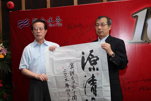 十年風雨滄桑,十年光輝榮耀!2013年7月20日,聯(lián)合水務集團創(chuàng)立十周年慶典儀式在美麗的黃浦江畔隆重舉行。上海市第十屆人大環(huán)資委員會主任委員、上海市水資源保護基金會常務副理事長關(guān)壯民先生和世界銀行所屬國際金融公司中國和蒙古區(qū)首席代表趙炫贊先生等嘉賓出席,與來自聯(lián)合水務集團總部、六省七市十一個項目公司的高管團隊成員共同見證聯(lián)合水務跨越十年的發(fā)展之路。