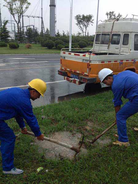 2個小時過去了,搶修工作已接近尾聲,此時突然狂風(fēng)大作,烏云密布,暴雨如注,仿佛一下子從白天穿越到黑夜。突發(fā)的天氣狀況讓維修人員措手不及。由于周邊樹木較多,風(fēng)力已達9級,為了防止發(fā)生意外,丁經(jīng)理讓部分人員暫到工程車里待命。過了一會,風(fēng)力稍微減弱,全體人員冒著大雨,有條不紊地進行維修收尾工作。后勤部迅速將器具整齊地排放在工程車上。