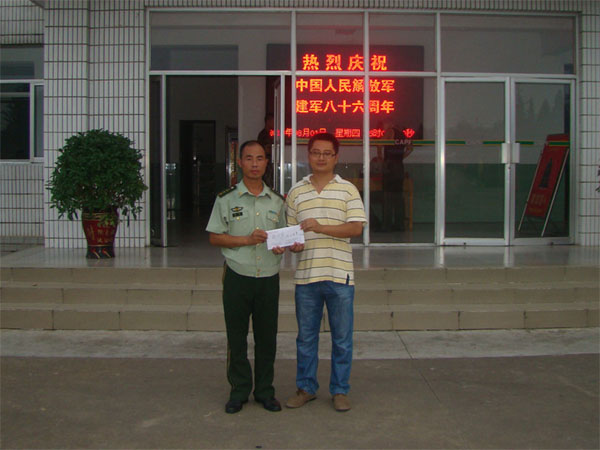 (圖、果園武警中隊(duì)長與蔡猛合影留念)