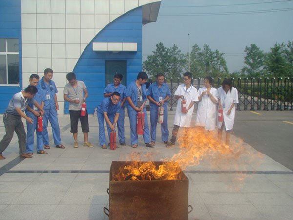 15時31分,在綜合樓南面出現(xiàn)1個模擬燃燒點。第一個發(fā)現(xiàn)火情的人根據(jù)現(xiàn)場情況首先向值班領(lǐng)導(dǎo)匯報了火災(zāi)現(xiàn)場情況,隨后立即按下火警報警器,拉響廠區(qū)內(nèi)警報系統(tǒng)以提示無關(guān)人員有序撤離。此時,滅火組成員在接到值班領(lǐng)導(dǎo)的搶救命令時,迅速裝備開車前往。在著火現(xiàn)場,按照公司制定的操作規(guī)程進(jìn)行滅火,經(jīng)過共同努力,于15時36分成功撲滅火源,應(yīng)急演練順利結(jié)束。