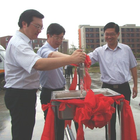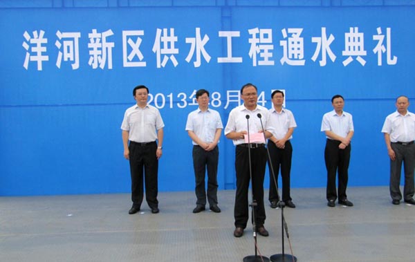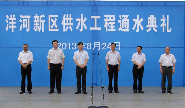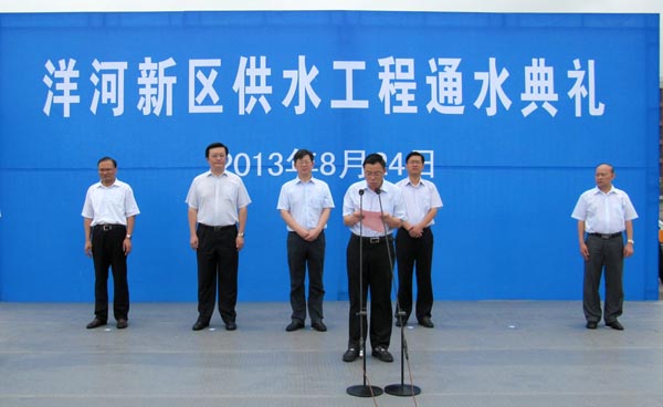 2013年8月24日上午9點10分,宿遷市洋河新區(qū)供水工程通水典禮在洋河新區(qū)舉行。宿遷市市委常委、政法委書記呂德明、副市長沈海濱、市政府張聯東副秘書長、市水務局局長葛書龍、洋河新區(qū)管委會主任劉金山、聯合水務集團副總裁劉猛、宿遷銀控自來水有限公司總經理夏承光等相關領導以及市直屬單位、洋河新區(qū)、宿遷銀控自來水有限公司部分職工代表參加了典禮。