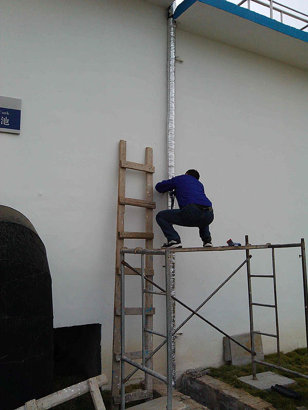 耿車污水處理廠室外有數(shù)量眾多的自來水管、中水管、沖洗水管、加藥管等,根據(jù)以往經(jīng)驗(yàn),這種裸露在室外的管道冬季易上凍。為了不影響正常生產(chǎn),廠里組織全體員工在入冬之前進(jìn)行管道保溫施工。