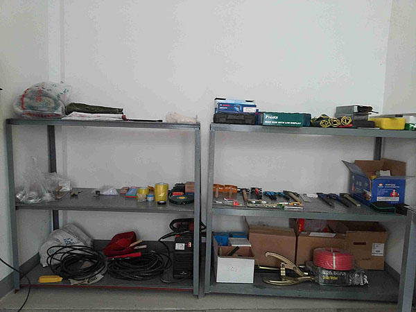 整潔的環(huán)境能讓人心情舒暢,也有利于提高工作效率。為了改變傳統(tǒng)工具間臟亂差等問題,同時(shí)方便管理、領(lǐng)用工具,耿車污水廠機(jī)電部利用建設(shè)期剩余材料自己做了工具架和操作臺。別看只有簡單的三層工具架和操作臺,制作起來卻一點(diǎn)也不簡單。主要的工序包括現(xiàn)場丈量尺寸、確定方案、切割下料、焊接、打磨、上防銹漆、上調(diào)和漆、晾干等,共耗時(shí)一周。