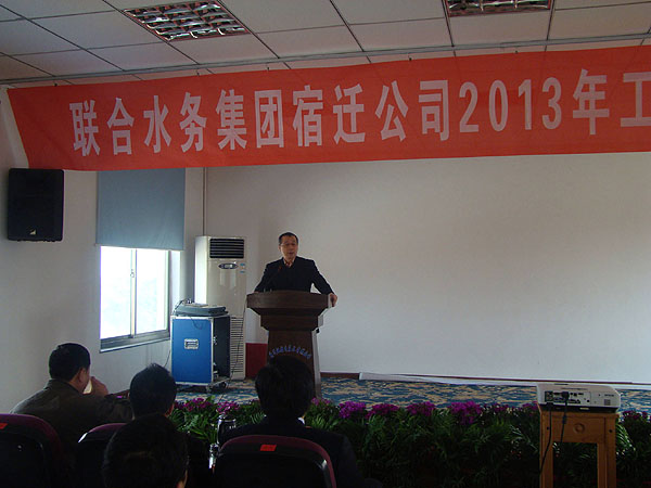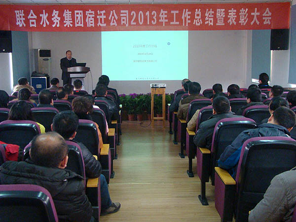 2014年1月24日,聯(lián)合水務(wù)集團(tuán)宿遷公司召開2013年度年終總結(jié)暨表彰大會。此次大會旨在回顧2013年工作的基礎(chǔ)上,對各項(xiàng)工作進(jìn)行梳理,分析原因、理清思路,激勵士氣,鼓舞干勁。同時,對2013年度優(yōu)秀員工進(jìn)行表彰,樹立榜樣,進(jìn)一步激發(fā)員工的工作熱情。參加總結(jié)表彰大會人員有宿遷公司主管以上人員、先進(jìn)員工和員工代表等近70人。聯(lián)合水務(wù)總裁俞總和副總裁劉總也在百忙之中參加此次總結(jié)大會。