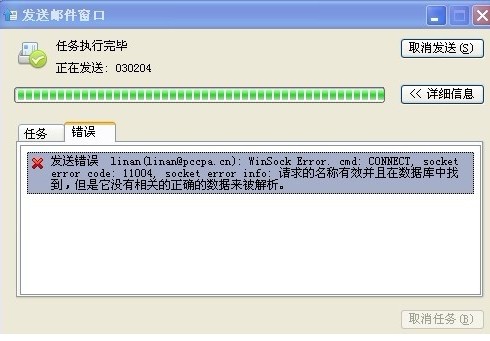 其導致的結(jié)果就是可以收郵件,不能發(fā)郵件。檢查發(fā)送服務器的設置,地址為smtp.united-water.com,這個是正確的地址,網(wǎng)上說的方法是要將電腦的DNS設為自動獲取。但是這臺電腦的DNS本身就是自動獲取的,我選擇重裝foxmail,重裝完畢后,問題仍然沒有解決,郵件照樣發(fā)不出去。真讓人傷腦筋,這可讓我這個自詡微機高手的人臉上有點掛不住了。只能從錯誤信息本身入手了,“沒有相關的正確的數(shù)據(jù)來被解析”,實際上相當于網(wǎng)址不能解析,那要是換成IP地址呢,我使用ping命令,ping出發(fā)送服務器的IP地址,并將其填入發(fā)送服務器地址內(nèi)。再試,問題解決了。但是這僅僅是解決了問題,問題出在哪里呢,再上網(wǎng)查域名不能解析的情況,往往因為是DNS緩存未清除的原因。在cmd命令下,輸入ipconfig /flushdns就可以清除DNS緩存了,一般情況下此命令可解決90%的域名不能解析的問題。如果還不行,那就只有重做系統(tǒng)了。