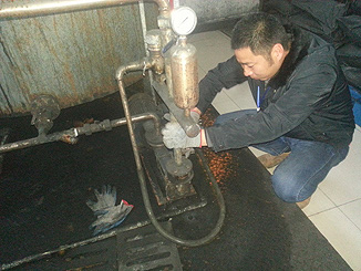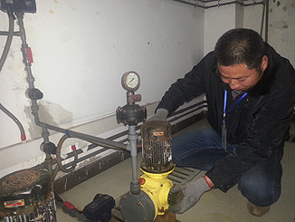 (圖2:工作人員在對(duì)加酸設(shè)備進(jìn)行檢查)