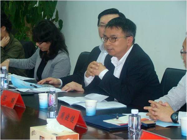 (圖2:夏總向考察團(tuán)成員介紹宿遷銀控自來水有限公司十年來的改制歷程)