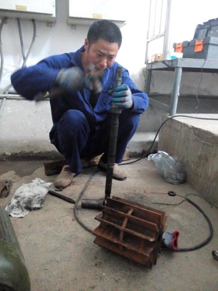 (圖2:現(xiàn)場(chǎng)拆卸軸套)