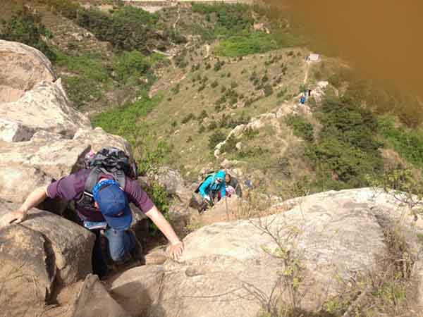 周末,朋友問(wèn)我明天是否去爬山鍛煉鍛煉身體,放松放松心情,我歷來(lái)對(duì)爬山不感興趣,剛準(zhǔn)備回絕,他們又動(dòng)員我說(shuō),爬刀山很有意思,去了絕不后悔。聽(tīng)說(shuō)是刀山,我想是不是傳說(shuō)中的“上刀山,下火!敝械牡渡。百度了一下:刀山,山東蒙陰縣內(nèi),屬于蒙山山脈,與云蒙峰相近,在戶外界,小有名氣,每個(gè)周末各地的驢友都會(huì)慕名而來(lái)。刀山西起口子后,東至圈門(mén)峰,馳騁奔突,宛若游龍,山勢(shì)嵯峨,如同刀脊,山脊之上,削薄如刀,故曰刀山,又叫蒙山,因兇險(xiǎn)而著稱(chēng)。于是乎決定:征服它。