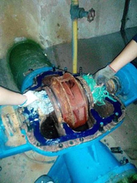 5月8日下午,已經(jīng)臨近下班時間,機電設備部接到運河泵站值班人員反映水泵出水量偏小,考慮到馬上就到了下班用水高峰階段,為了不影響市民的正常用水,部門經(jīng)理決定錯開用水高峰時段,安排維修人員于晚上十點鐘開始到現(xiàn)場進行問題排查解決。當晚十點鐘維修人員準時到達現(xiàn)場展開維修工作,初步判斷是四號機組泵體存在故障問題。果不其然,打開水泵泵殼檢查后發(fā)現(xiàn),泵體的葉輪被大量異物堵塞。查明故障原因后維修人員立即采取行動,清除纏繞在葉輪上的異物,同時為水泵更換上了新的盤根,解決了水泵的漏水的問題。經(jīng)過維修人員的維修,運河泵站四號機組恢復正常工作,水泵出水量達到供水要求。
