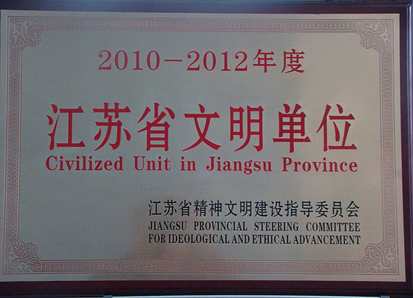 宿遷銀控自來水有限公司被江蘇省精神文明建設(shè)指導(dǎo)委員會授予“2010-2012年江蘇省文明單位”的榮譽稱號