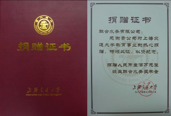 聯(lián)合水務(wù)出資捐贈(zèng)上海交通大學(xué),是聯(lián)合水務(wù)集團(tuán)投身公益事業(yè)、支持中國教育事業(yè)的重要舉措之一。聯(lián)合水務(wù)以俞偉景總裁為首的創(chuàng)始者自2003年在中國水務(wù)行業(yè)開創(chuàng)事業(yè)以來,歷經(jīng)十余年的發(fā)展,已經(jīng)在全國各地?fù)碛惺鄠(gè)水務(wù)項(xiàng)目,日處理規(guī)模逾120萬噸,事業(yè)進(jìn)入了蓬勃發(fā)展階段。上海交通大學(xué),作為中國最著名的高等學(xué)府之一,培養(yǎng)出了一批批的優(yōu)秀人才,聯(lián)合水務(wù)通過獎(jiǎng)學(xué)金捐贈(zèng)支持上海交通大學(xué)培養(yǎng)出更多、更優(yōu)秀的人才。同時(shí),上海交通大學(xué)作為聯(lián)合水務(wù)集團(tuán)董事長兼總裁俞偉景先生的母校,也是俞總裁回饋母校、感恩母校的方式之一。
